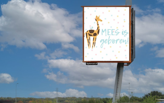 De liefde verklaren. Iemand feliciteren. Persoonlijk het Nederlands Elftal toejuichen. Of een goed doel steunen. Het kan vanaf vandaag via Opdemast.nl. Een nieuw kanaal waarmee particulieren in één keer honderdduizenden mensen kunnen bereiken met hun persoonlijke boodschap. Opdemast.nl bestaat uit een netwerk van Digitale Reclamemasten langs snelwegen in heel Nederland. ,,We maken deze masten toegankelijk voor particulieren. Daarmee zijn we direct een grote concurrent van partijen als Greetz en Hallmark”, aldus Mike Leegwater van Opdemast.nl. ,,Een kaartje heeft iedereen wel eens verstuurd of ontvangen. Een felicitatie via een Digitale Reclamemast is daarentegen echt origineel en uniek.”